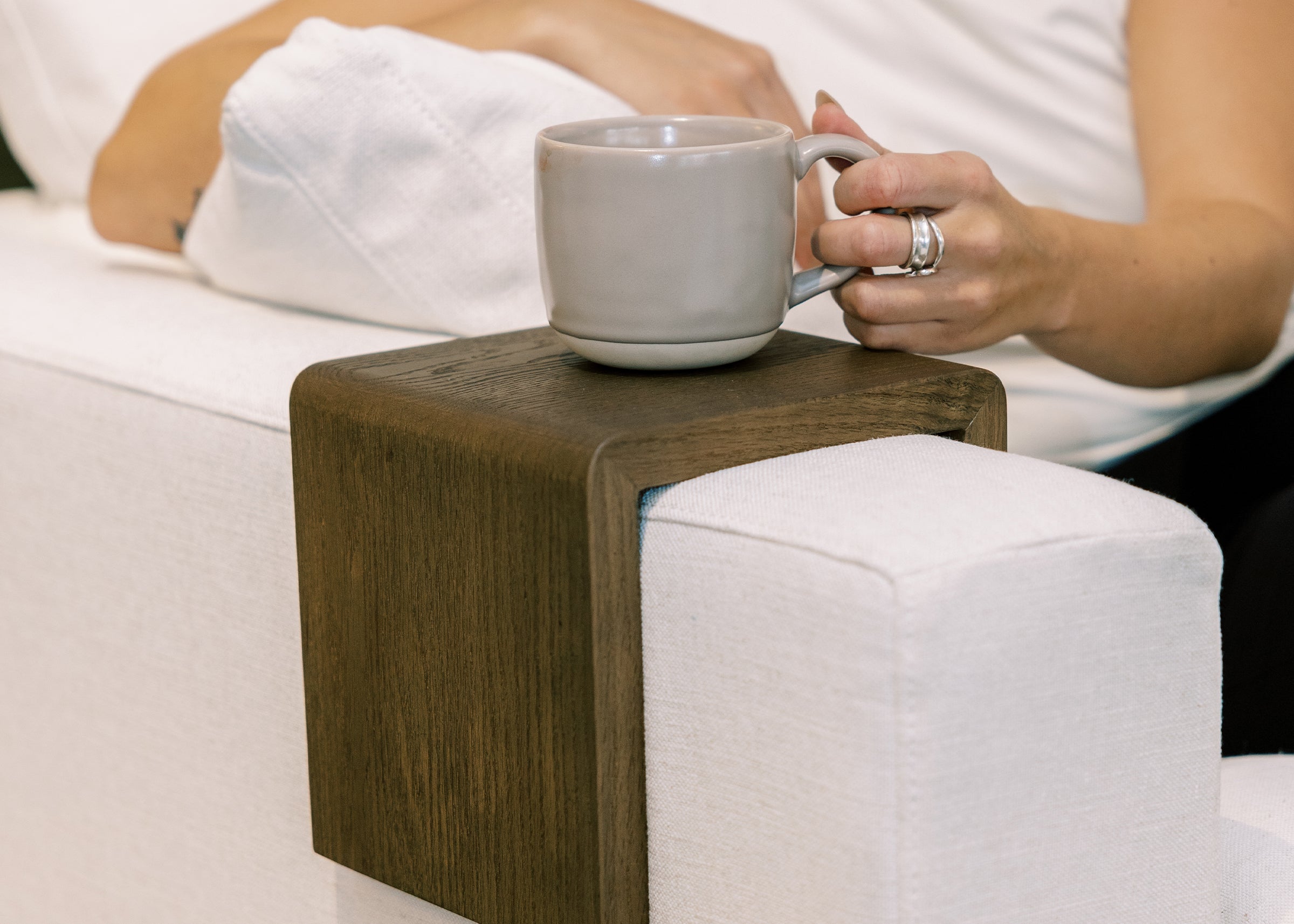 Turn any seat into the perfect place for your coffee, book, or remote. Our solid wood arm tray slides over your sofa arm to create a stable surface—no extra tables needed. Simple, functional, and made to match your space.
