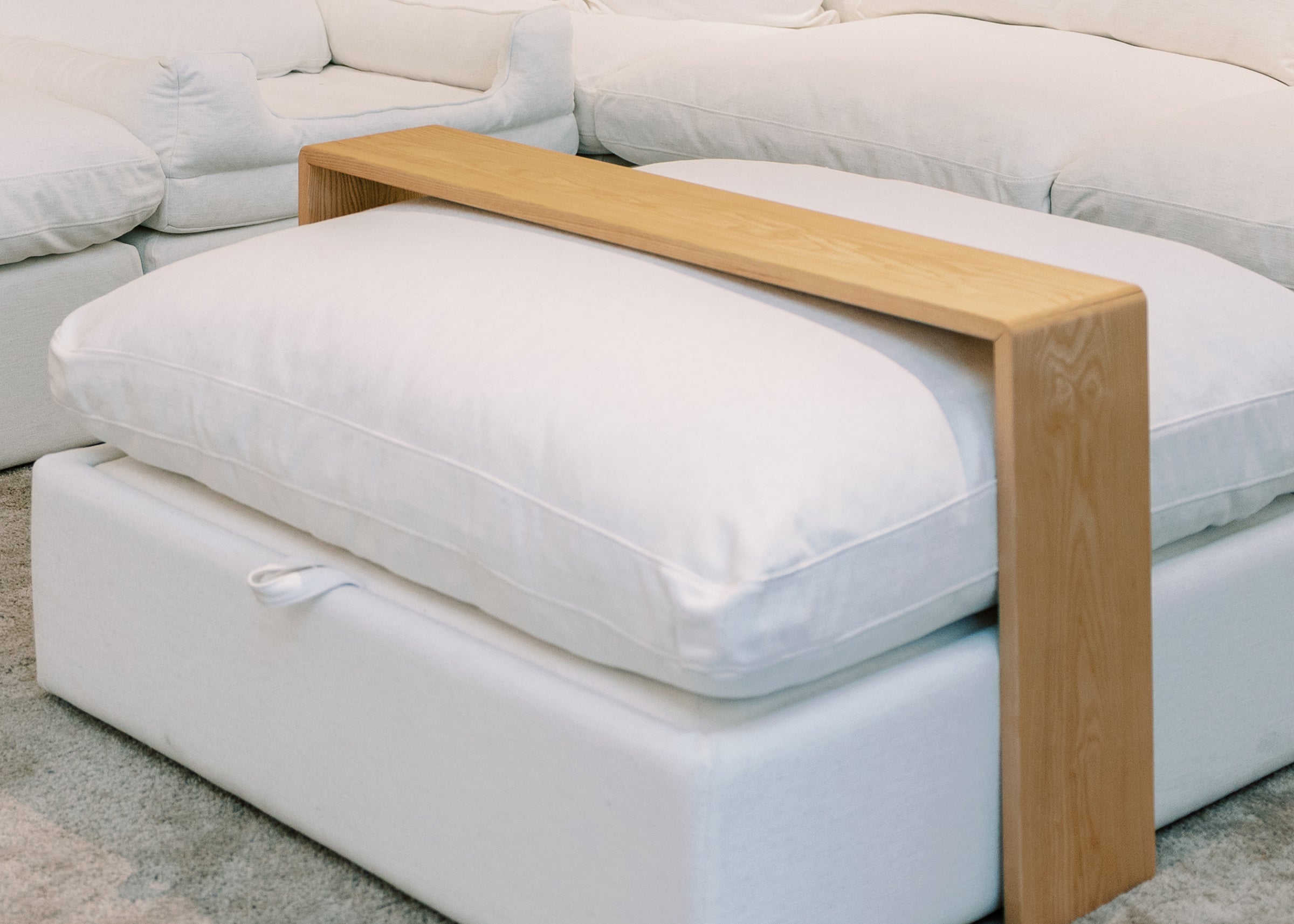 Add structure to your lounge setup in seconds. This solid wood tray sits perfectly over your ottoman, giving you a clean surface for drinks, snacks, or your laptop—while keeping the comfort of a soft, modular seat.