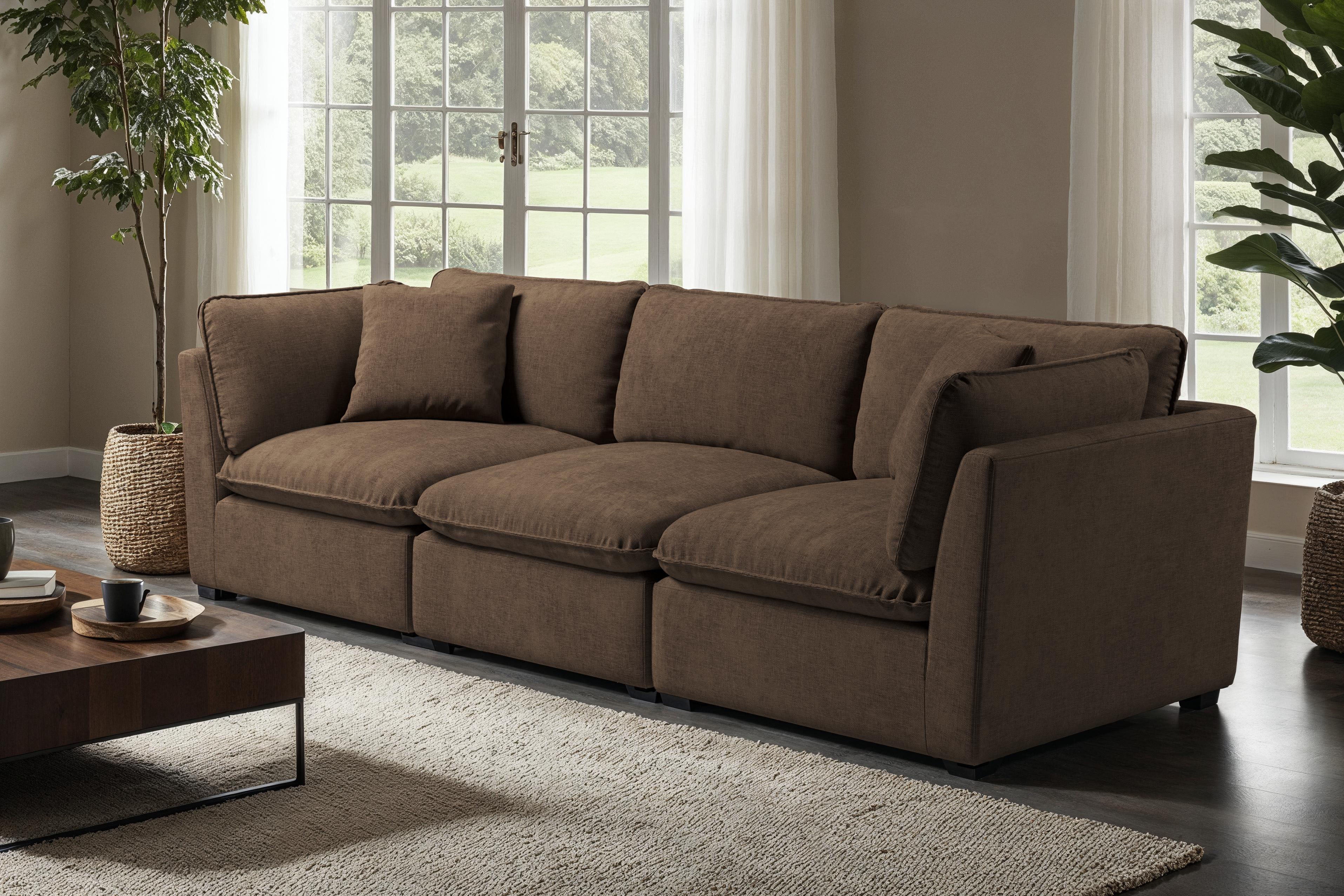 Pre-assembled. Simply unbox and configure your sofa.